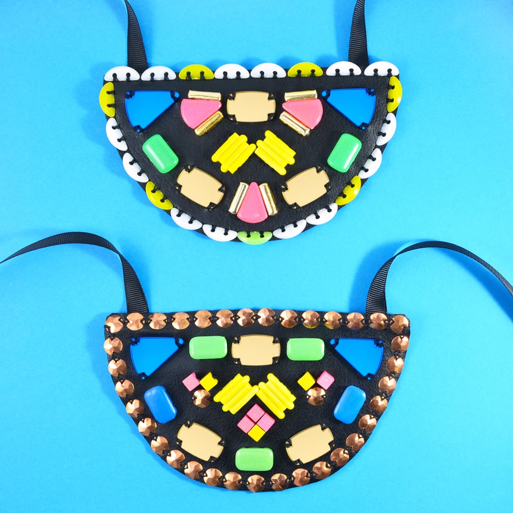 These statement stitched bead necklaces are made from lots of squirrelled away bits and bobs that we have been collecting for years!